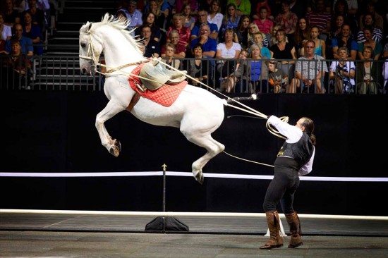 That’s not to say that there aren’t some special tricks Gasser can’t wait to perform for the enjoyment of the crowd. The Gala of The Royal Horses will include performances that feature the Lipizzaner Stallions, the Spanish Andalusian, Friesian, and the majestic Arabian breeds, as well as the recently added Quarter horse. The event is dedicated to showing off the amazing beauty and maneuvers these horses are capable of including the stunning maneuvers once used on the battlefield now known as “The Airs Above the Ground”, The “Art of Garrocha" and "Roman Riding". Gasser stated that horse-lovers enjoy the show but those without equestrian experience also find it thrilling.